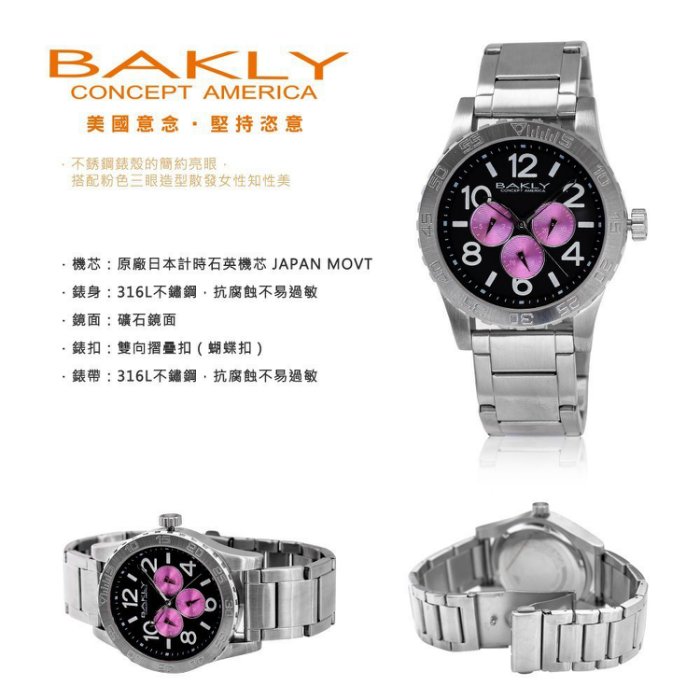 ∥ 國王時計 ∥ 【BAKLY】撼動系列三眼日期腕錶【BA9009】