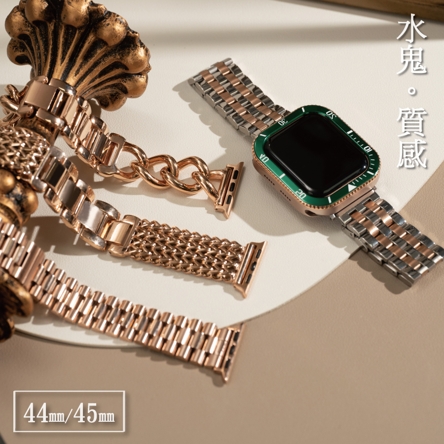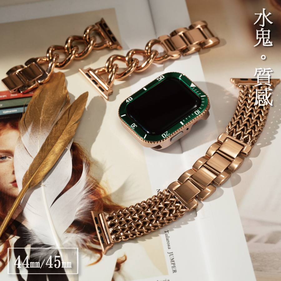高端設計款_綠玫金水鬼x鋼錶帶系列 44/45mm Apple Watch錶帶