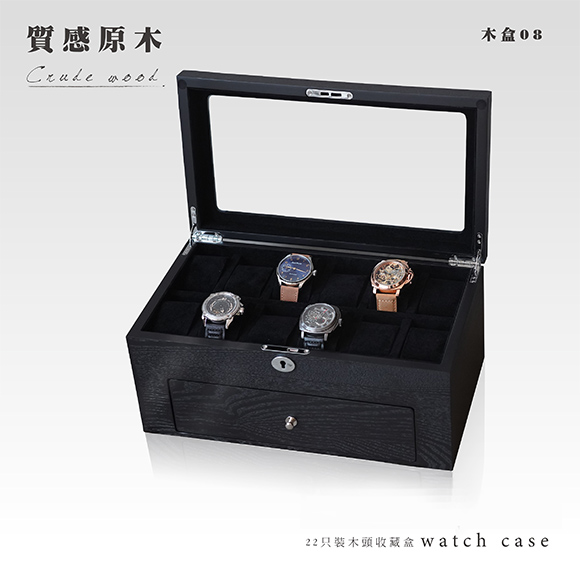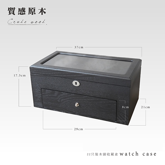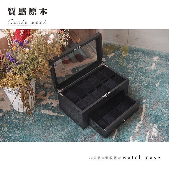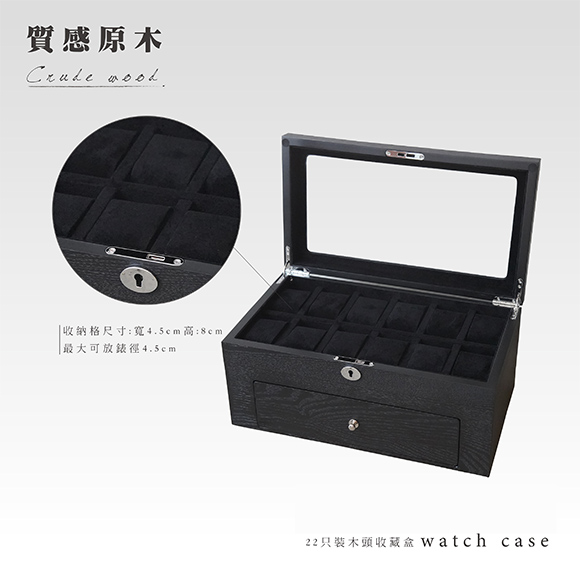 原木手錶收藏盒【22只入】全黑超容量抽屜木盒 (木盒08)