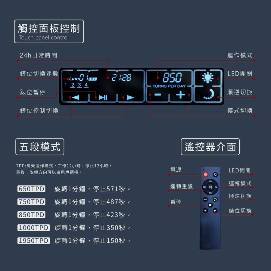 │1950TPD│旋轉1分鍾,停止150秒,然後重複。