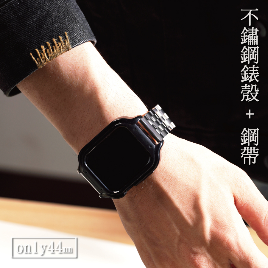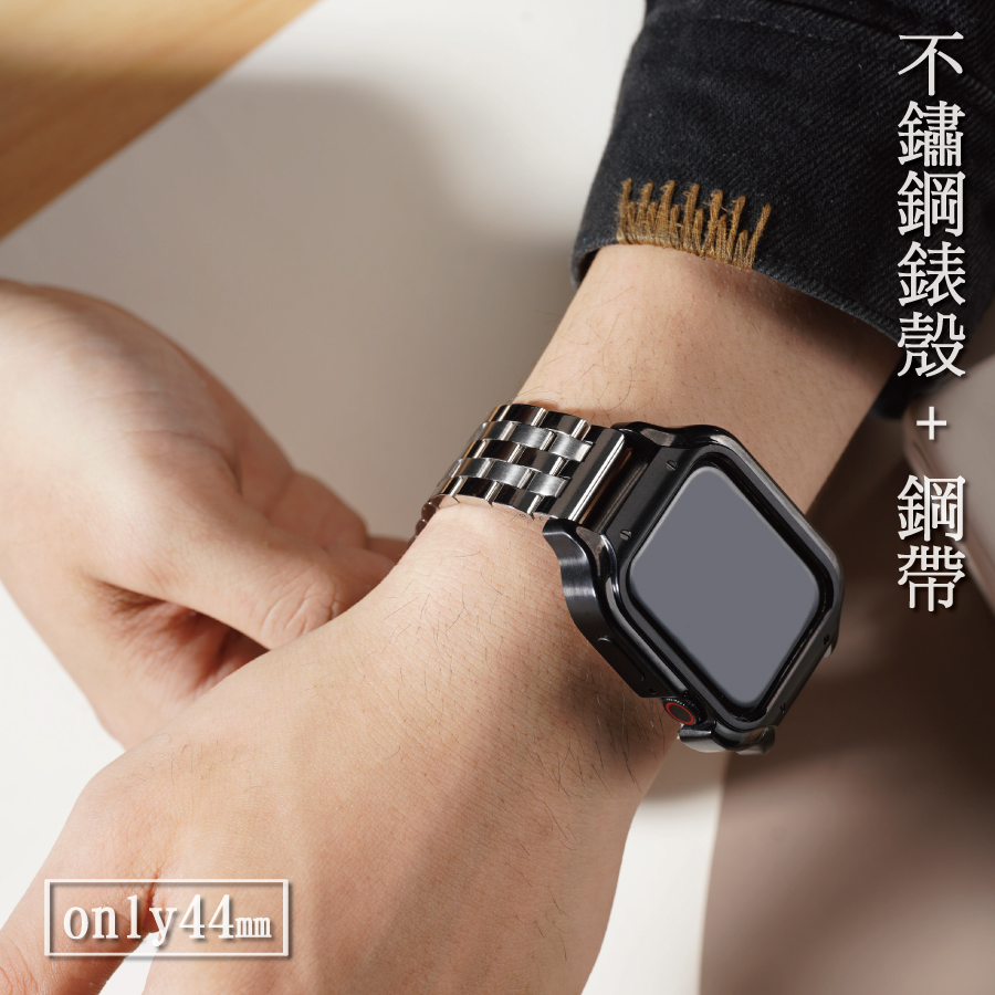 任選任搭不鏽鋼錶殼超值套組(搭雙色豪式五株不鏽鋼錶帶) 44mm專用 Apple watch代用錶帶