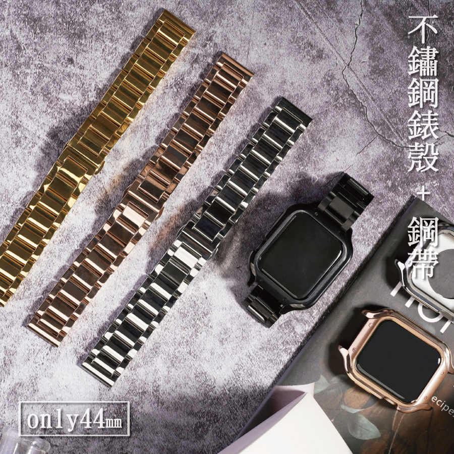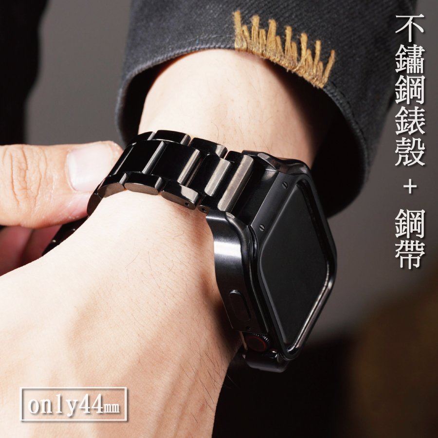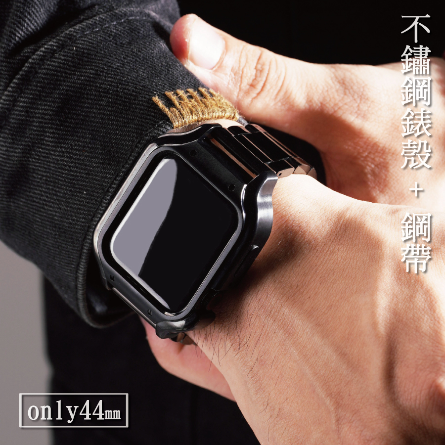 任選任搭不鏽鋼錶殼超值套組(搭耀眼光面不鏽鋼錶帶) 44mm專用 Apple watch代用錶帶