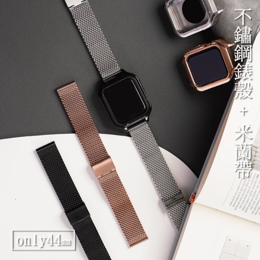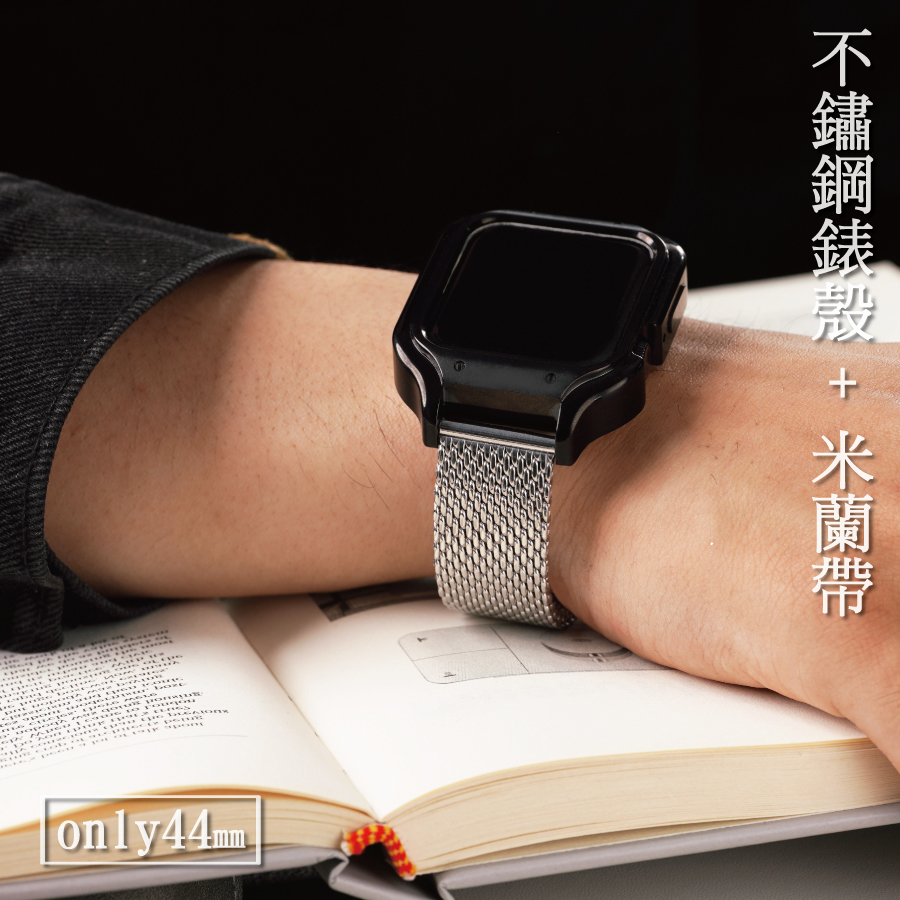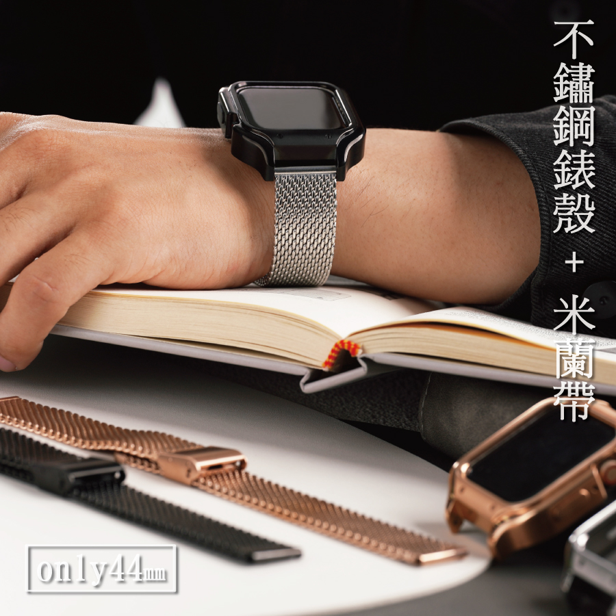 任選任搭不鏽鋼錶殼超值套組(搭三色粗米蘭316L不鏽鋼帶) 44mm專用 Apple watch代用錶帶