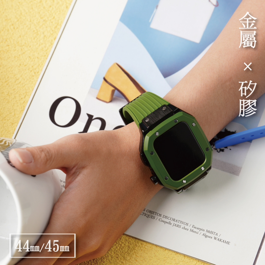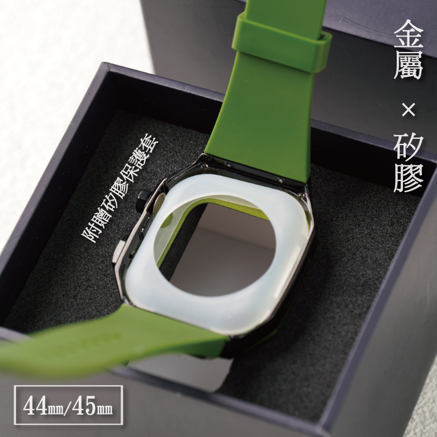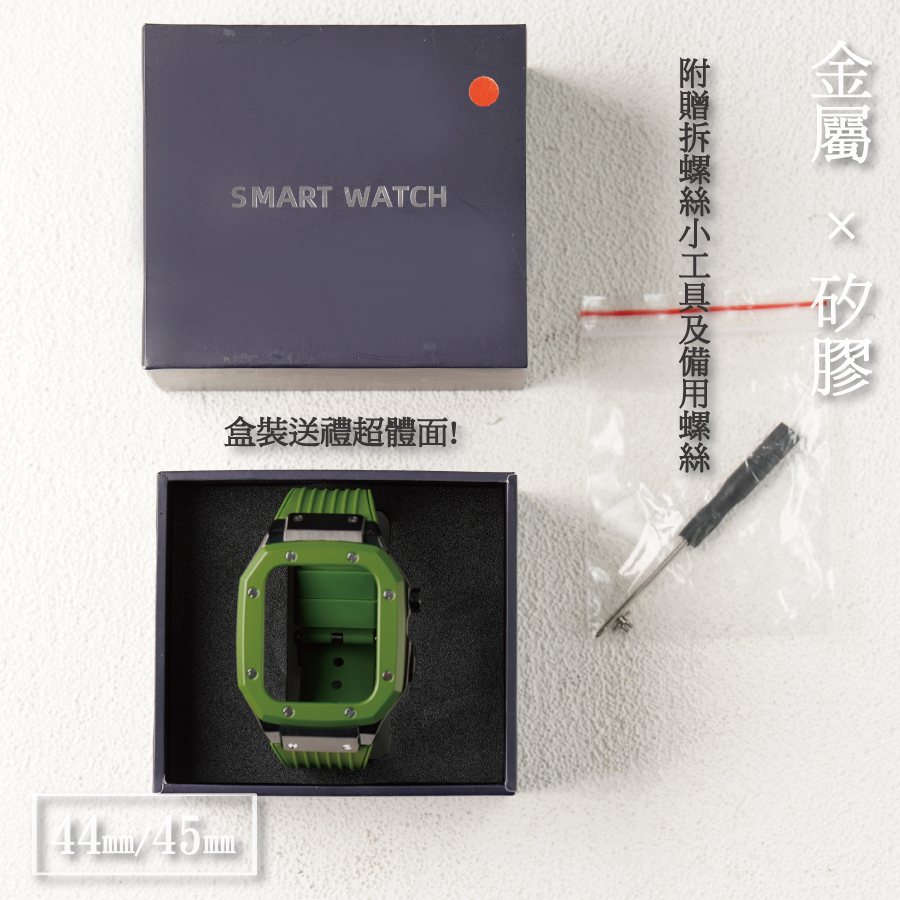 中性運動風金屬矽膠錶帶套組 Apple watch代用錶帶(44/45mm通用)
