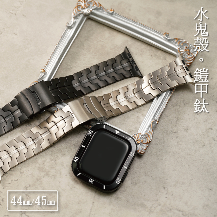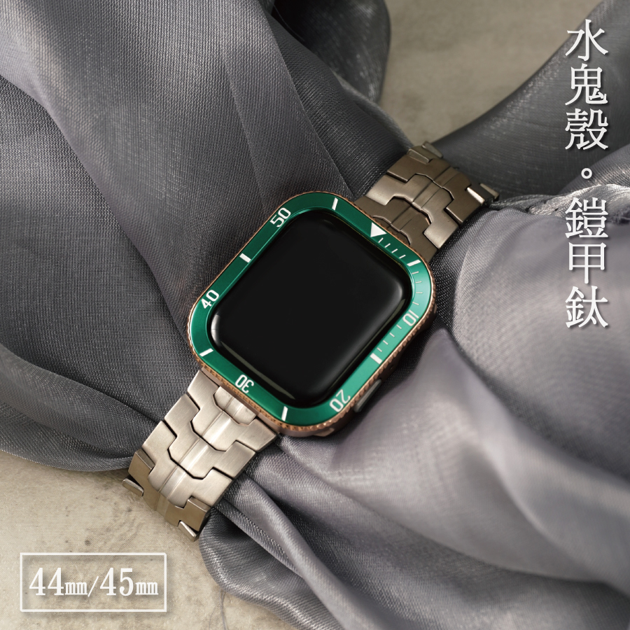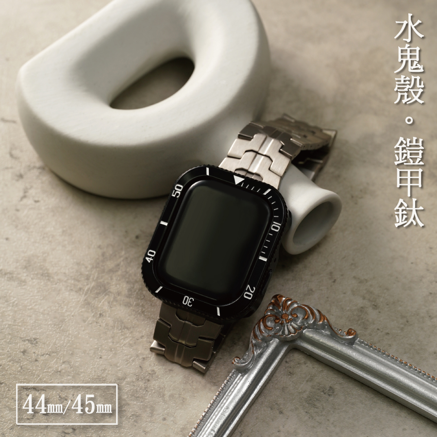 高端設計款-水鬼鋼錶殼×鎧甲鈦錶帶系列 44/45mm Apple watch錶帶