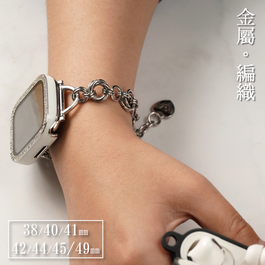 金屬扭圈愛心墜飾錶帶 38/40/41/42/44/45/49mmUltra Apple watch錶帶